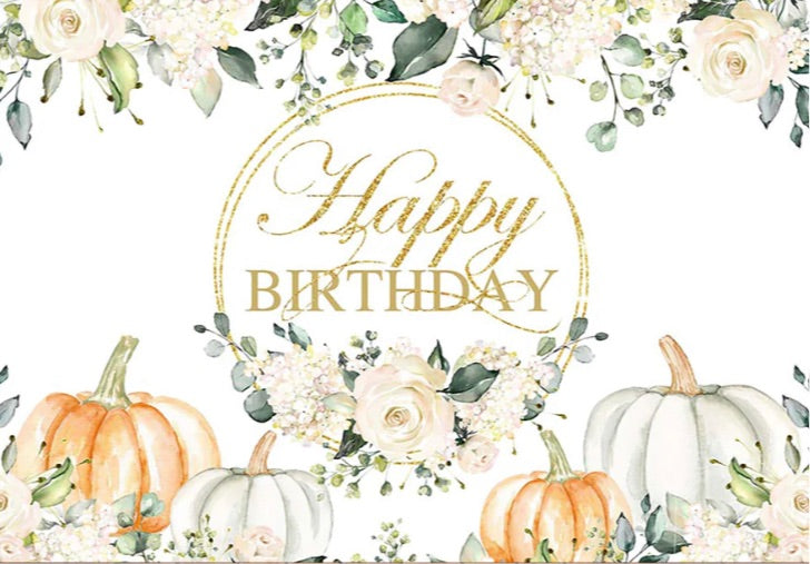 Happy Gold Pumpkin Backdrop (Material: Vinyl)